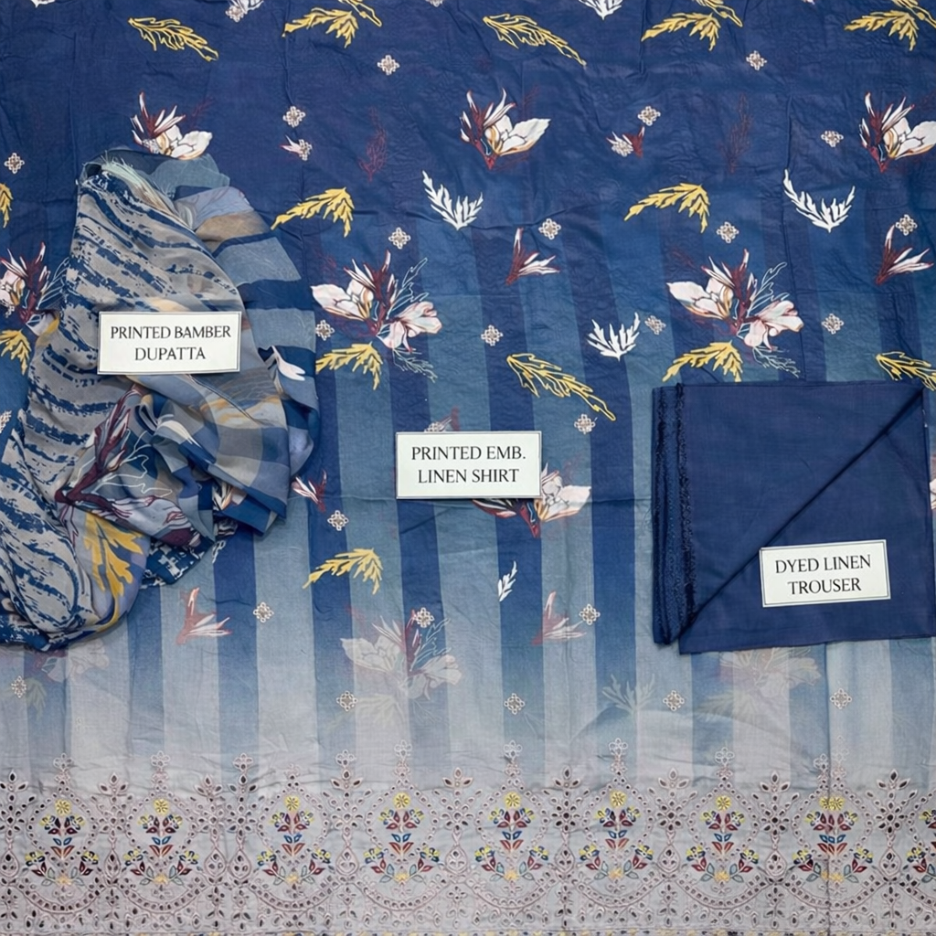 💙 Elegant Blue Linen Suit with Embroidered Details