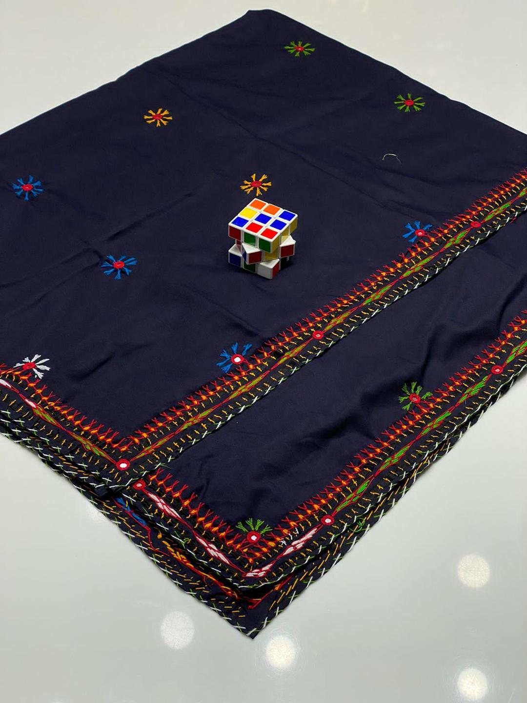 π Womenβs Swiss Embroidered Border Shawl β Blue