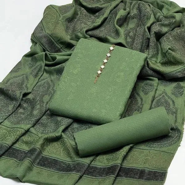 Upgrade your winter wardrobe with this premium heavy embroidered 3-piece Dhanak suit paired with a warm wool shawl. Designed for elegance, comfort, and premium winter wear.