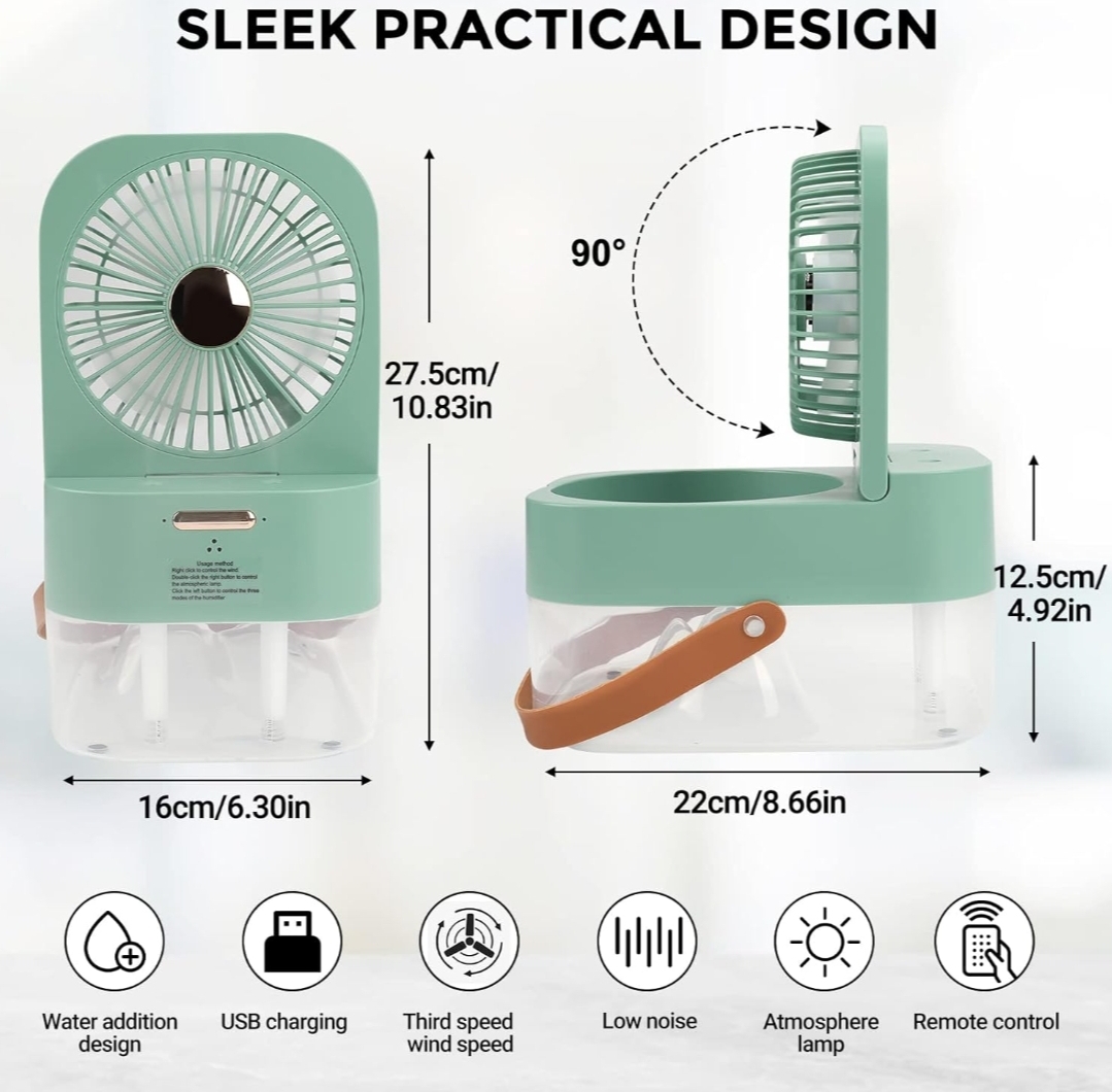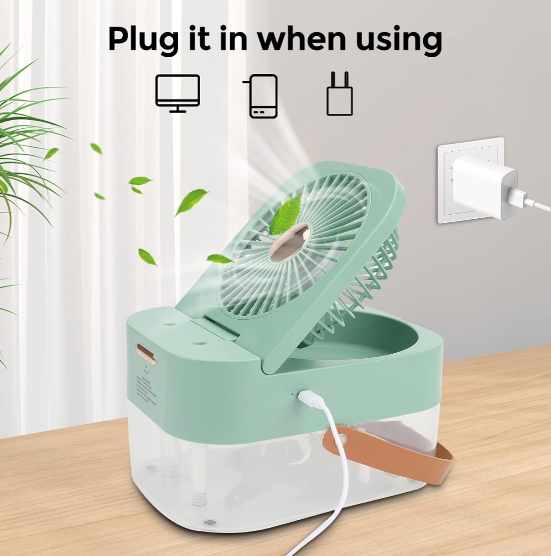Mini Cool Mist Fan Pakistan — Talha Bazaar ka exclusive 3-in-1 cooling solution — Fan, Humidifier and Night Light