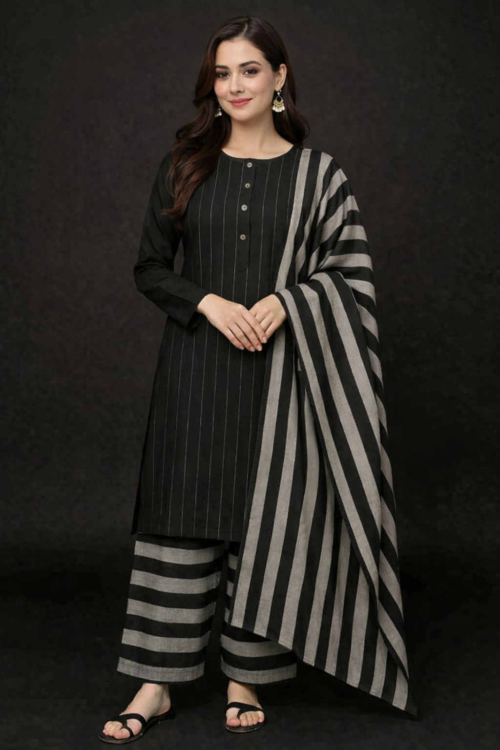 Upgrade your winter wardrobe with this elegant 3 pcs embroidered Dhanak suit. Perfect for casual and semi-formal winter wear, featuring rich embroidery on the shirt with a coordinated trouser and dupatta.