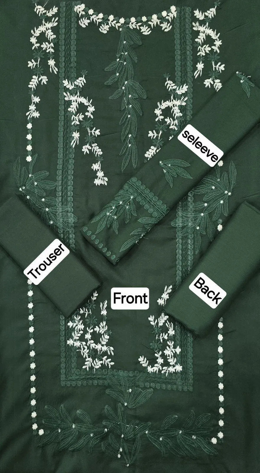 Elegant Green Embroidered Suit Set – 2 Pcs (Dhanak Fabric)