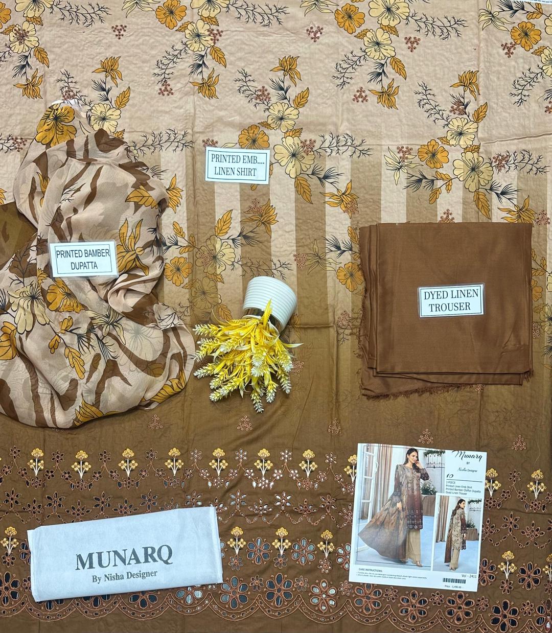 Elevate your style with this stunning brown 3-piece linen suit, designed for the modern woman who values tradition and elegance. Featuring intricate printed embroidery, chikankari-embroidered sleeves, and a beautifully cut daman, this ensemble captures the charm of sophistication. The embroidered Bamber dupatta adds a graceful finishing touch β perfect for festive occasions, casual gatherings, or evening wear during the winter season.